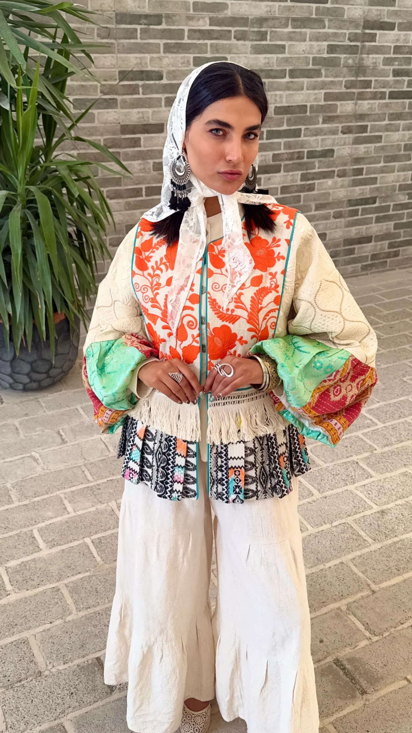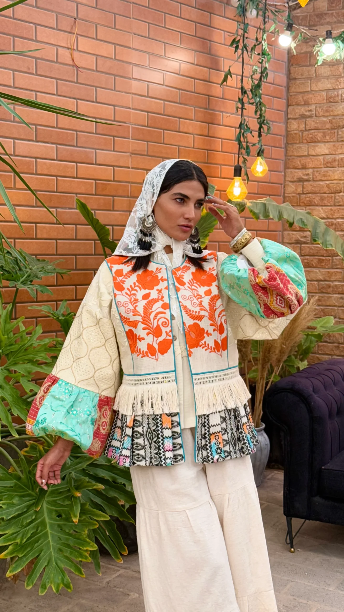 مانتو ترکیبی با پارچه های گلدوزی